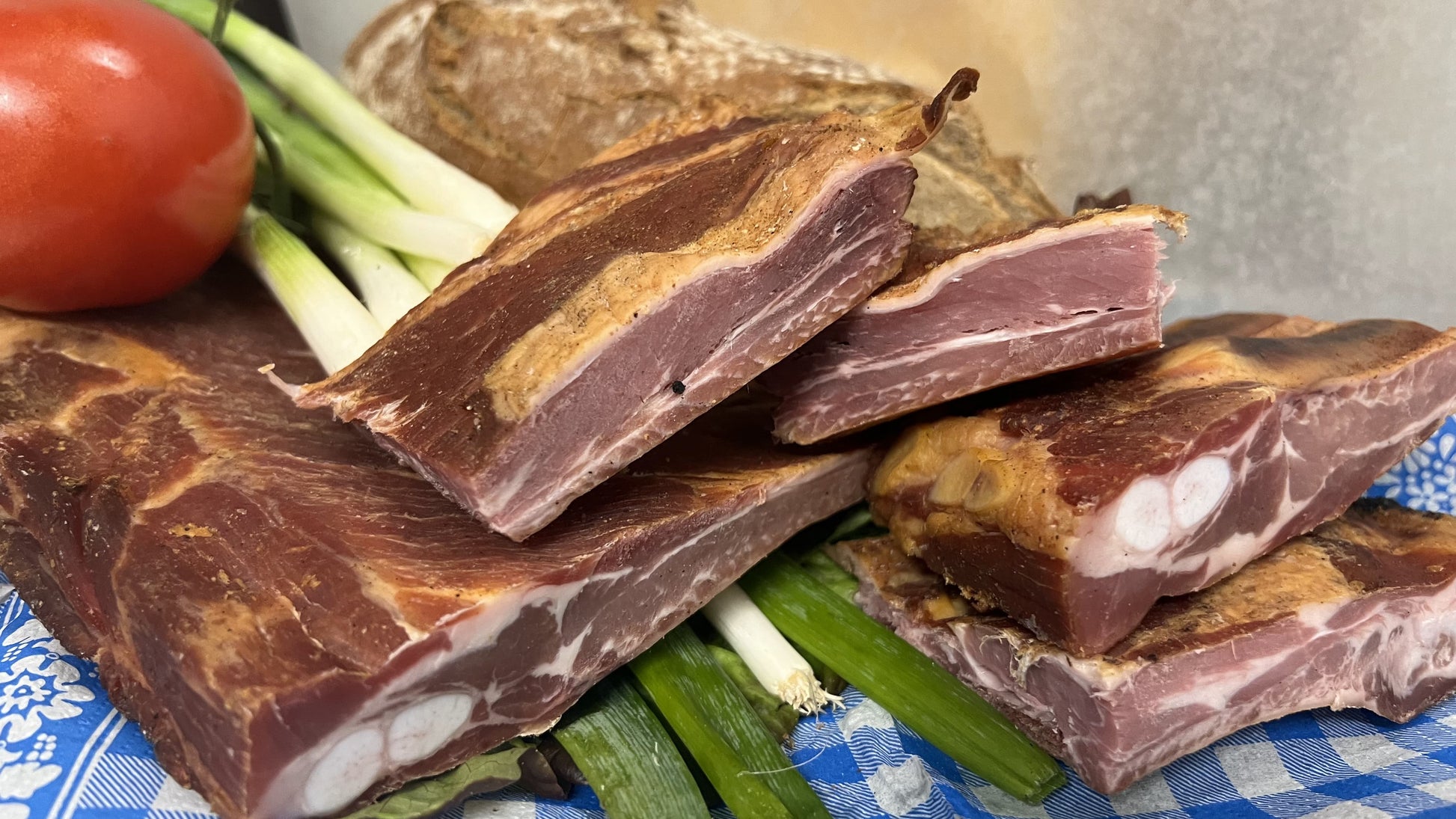 Entdecken Sie unsere geräucherten Rippchen, die nach einem alten, traditionellen Rezept hergestellt werden. Diese zarten, saftigen Rippchen werden zunächst sorgfältig gesalzen und dann über Buchenholz im Kamin geräuchert, was ihnen ihren einzigartigen, herzhaften Geschmack verleiht. Ob als Delikatesse im Eintopf, als Einlage im Sauerkraut oder einfach bei einer herzhaften Brotzeit, diese Rippchen bringen einen unverwechselbaren Geschmack auf Ihren Tisch. Ideal für Feiertage, Festessen oder als besonderes Schmankerl für den Alltag. 🍽️