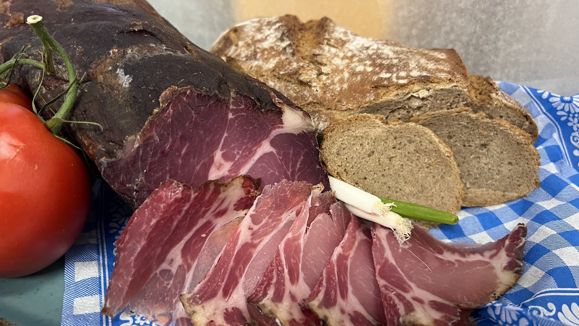Ein Klassiker aus Bayern und dem Balkan! 🇧🇦🇩🇪 Unser geräucherter Schweinehals (Budola) ist eine wahre Delikatesse, die sowohl in Bayern als auch auf dem Balkan zu den beliebtesten Wurst- und Schinkenspezialitäten gehört. Nach traditionellem Rezept und mit viel Liebe in unserem Kamin über Buchenholz geräuchert, bringt dieser Budola den authentischen Geschmack direkt auf Ihren Tisch. 🍖🔥